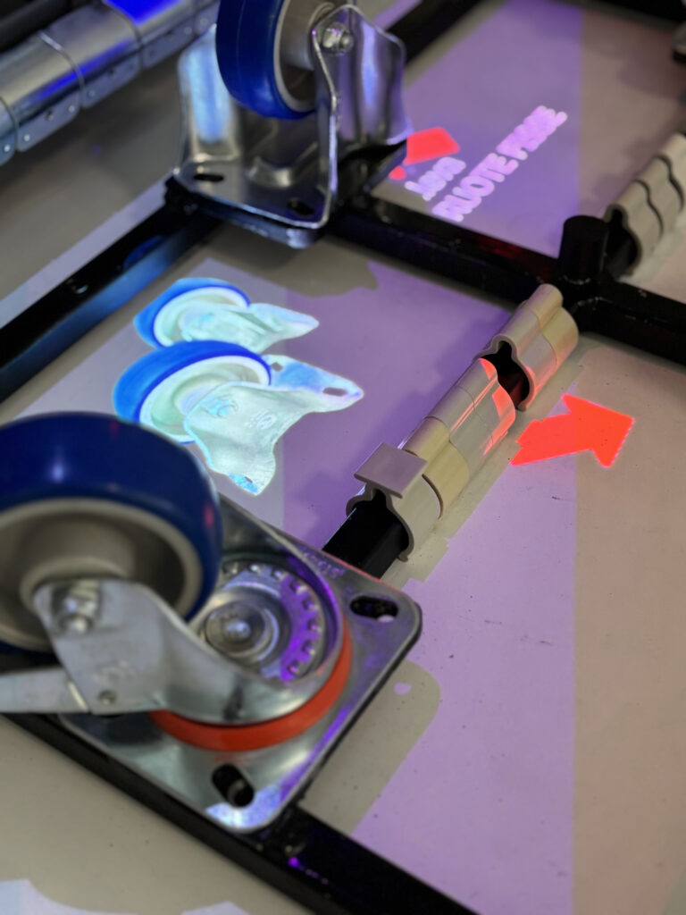 In molti casi questo approccio si traduce in soluzioni meccaniche intelligenti, spesso conosciute come Karakuri, che sfruttano principi fisici semplici come gravità, leve, contrappesi o scorrimenti guidati per facilitare le operazioni. Questi sistemi permettono di ottenere risultati simili a quelli di un’automazione tradizionale, ma con una struttura molto più semplice. L’operatore rimane parte attiva del processo, mentre il sistema meccanico supporta il lavoro riducendo sforzi, errori e tempi improduttivi.