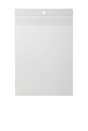 Busta formato A5 (148 x 210 mm) in polipropilene trasparente ultra resistente, dotata di occhiello rinforzato per affissione. Apertura lato superiore con aletta di chiusura.Utilizzabile con fotocopiatrici.