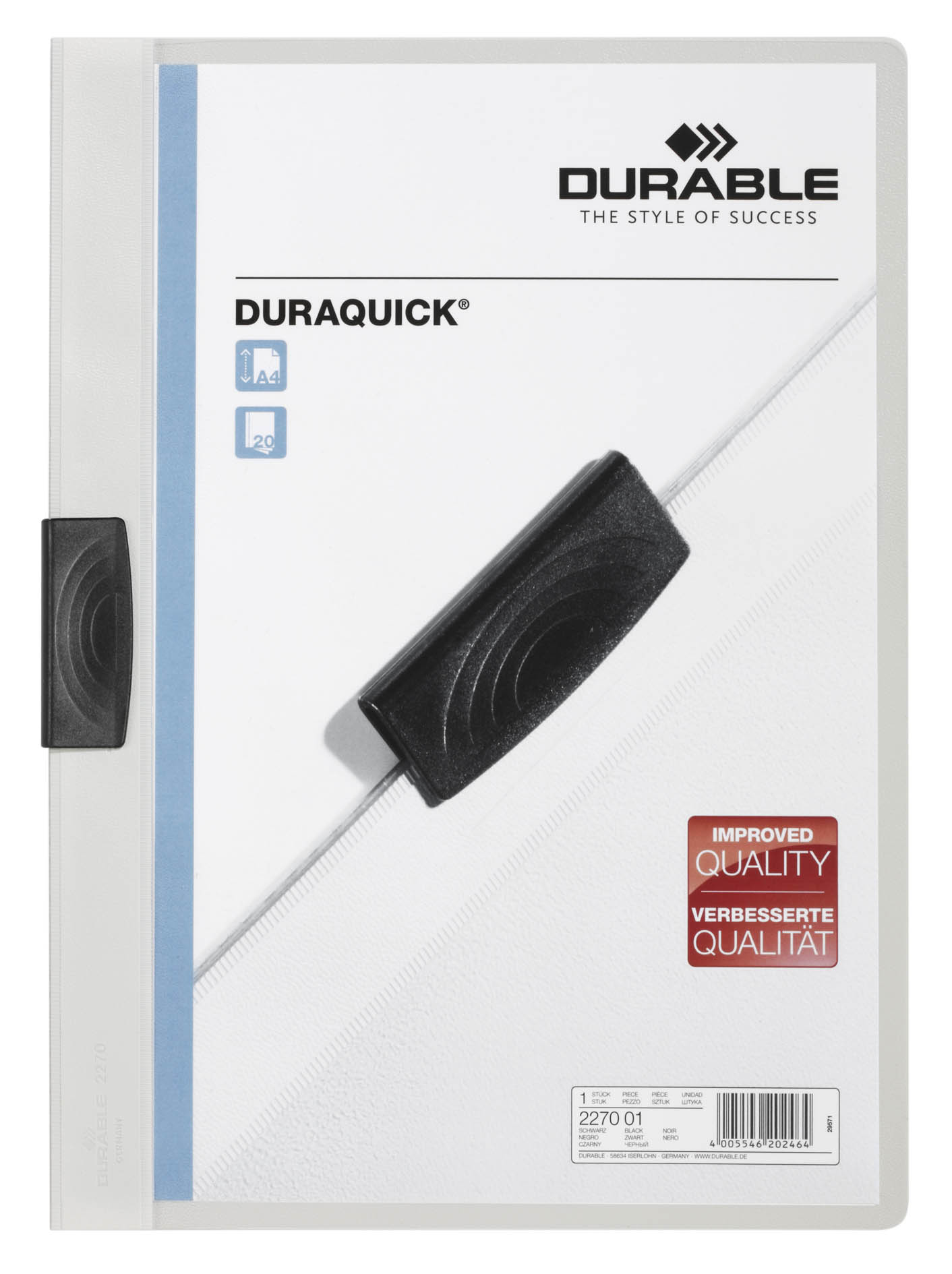 Cartellina in plastica con clip per documenti non perforati. Copertina frontale flessibile trasparente crystal-clear e retro rigido colorato. La clip è realizzata con una speciale e resistente plastica che assicura il perfetto funzionamento a lungo. Il design sottile e moderno della clip consentono di archiviare e presentare con stile i propri documenti, fascicoli, ecc.