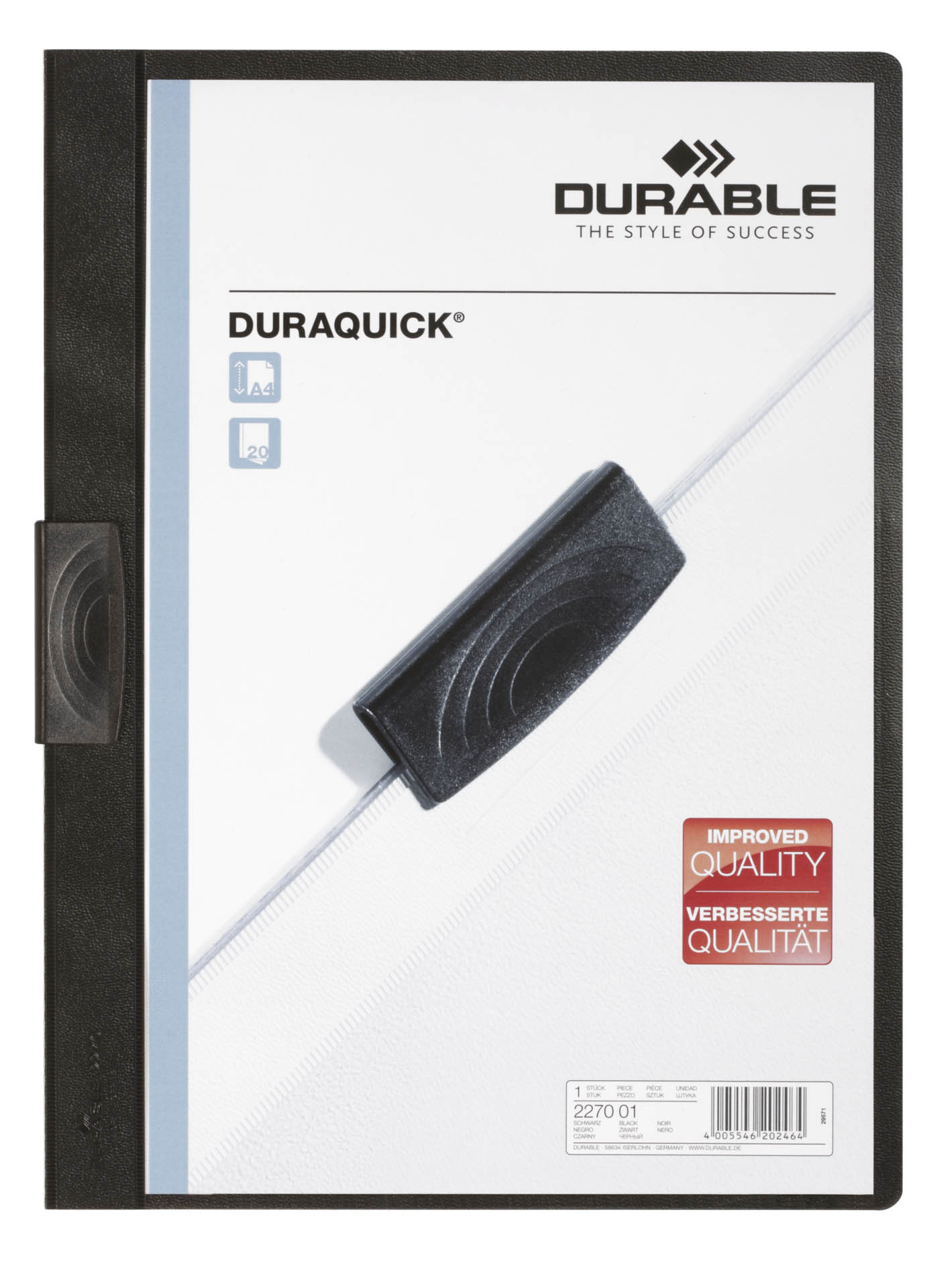 Cartellina in plastica con clip per documenti non perforati. Copertina frontale flessibile trasparente crystal-clear e retro rigido colorato. La clip è realizzata con una speciale e resistente plastica che assicura il perfetto funzionamento a lungo. Il design sottile e moderno della clip consentono di archiviare e presentare con stile i propri documenti, fascicoli, ecc.