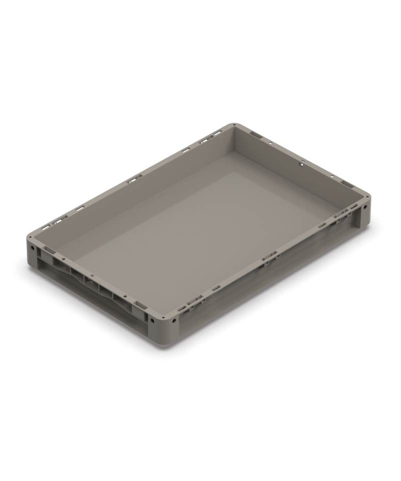 CASSETTA NEXIT IN REPLAST – FONDO RINFORZATO – MANIGLIE CHIUSE – DIM. 600X400X075H MM – COLORE GRIGIO 01