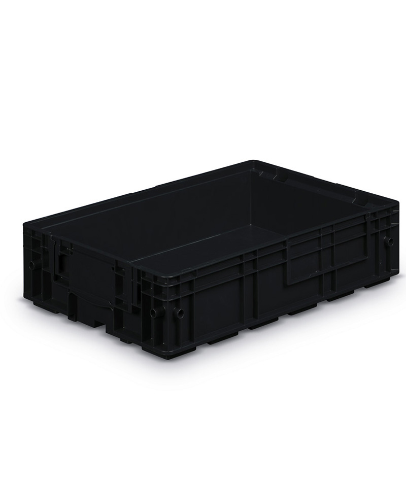 CASSETTA IN POLIPROPILENE CONDUTTIVO CON FONDO RINFORZATO-CAPACITA Lt=22 – DIM. MM L=600 P=400 A=147 – COLORE: NERO