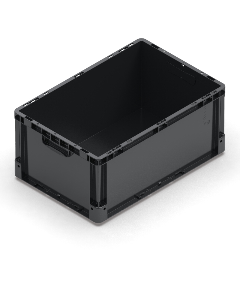 CASSETTA NEXIT IN PP CONDUTTIVO – FONDO LISCIO – MANIGLIE CHIUSE – PLUG – DIM. 600X400X270H MM – COLORE NERO 07