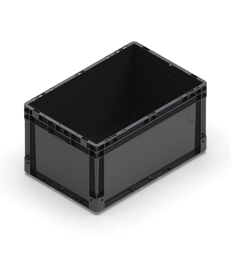 CASSETTA NEXIT IN PP CONDUTTIVO – FONDO LISCIO – MANIGLIE CHIUSE – PLUG – DIM. 600X400X320H MM – COLORE NERO 07