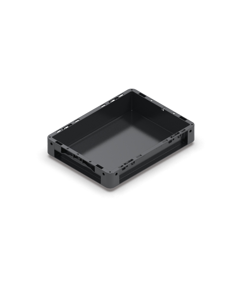 CASSETTA NEXIT IN PP CONDUTTIVO – FONDO LISCIO – MANIGLIE CHIUSE – DIM. 400X300X75H MM – COLORE NERO
