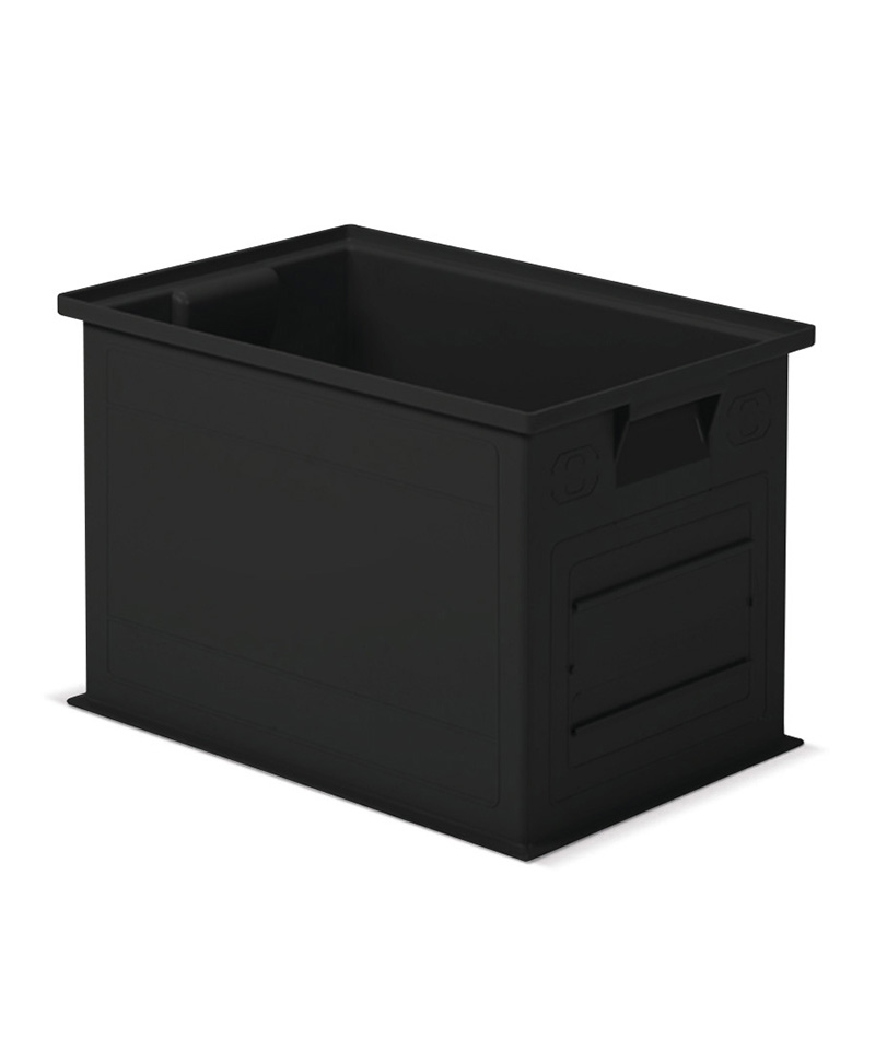 CASSETTA IN POLIPROPILENE CONDUTTIVO SERIE ZEUS MISURA 272-4A5 CON FONDO NERVATO A 45°-CAPACITA Lt=40.5 – DIM. MM L=450 P=300 A=300 – COLORE: NERO