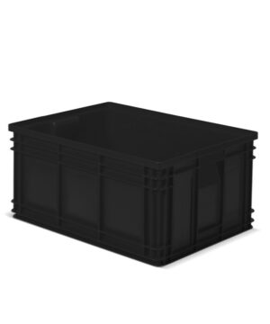 CASSETTA IN POLIPROPILENE CONDUTTIVO SERIE ZEUS MISURA 272-5 CON FONDO NERVATO A 45°-CAPACITA Lt=85 – DIM. MM L=630 P=450 A=300 – COLORE: NERO