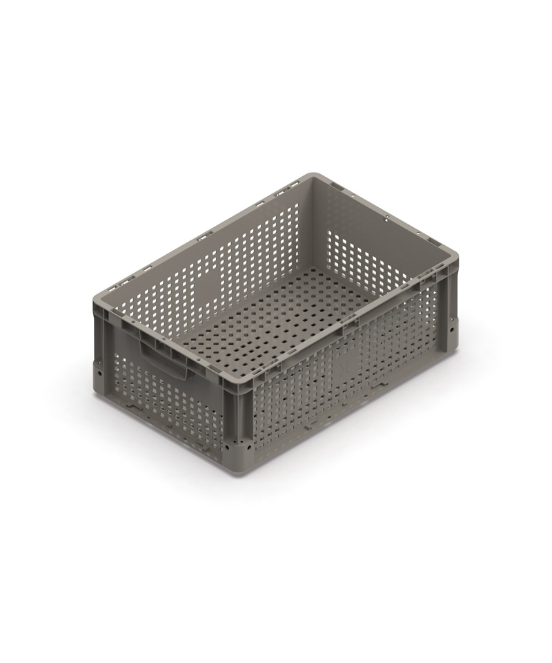 CASSETTA NEXIT IN REPLAST – PARETI FORATE, FONDO FORATO E RINFORZATO – MANIGLIE CHIUSE – DIM. 600X400X220H MM – COLORE GRIGIO 01