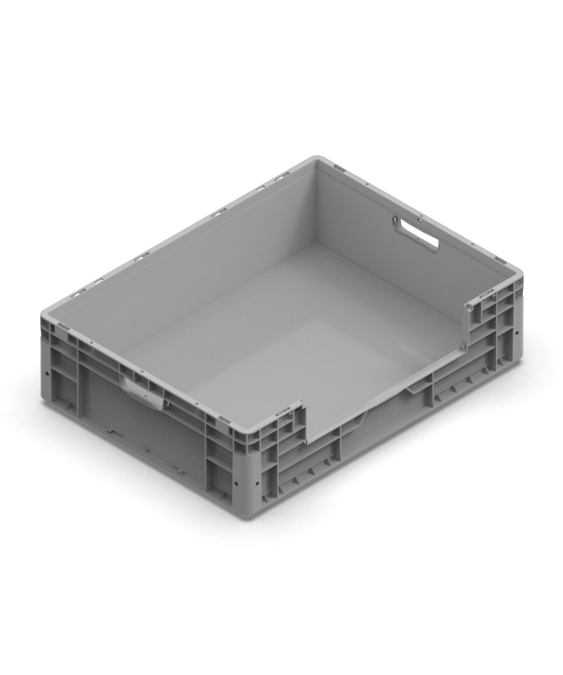 CASSETTA NEXIT 800X600X220H MM – FONDO RINFORZATO – PORTATA 80 KG – MANIGLIE APERTE – PICKING LATO LUNGO – COLORE GRIGIO 01