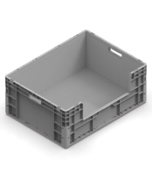 CASSETTA NEXIT 800X600X320H MM – FONDO RINFORZATO – PORTATA 80 KG – MANIGLIE APERTE – PICKING LATO LUNGO – COLORE GRIGIO 01