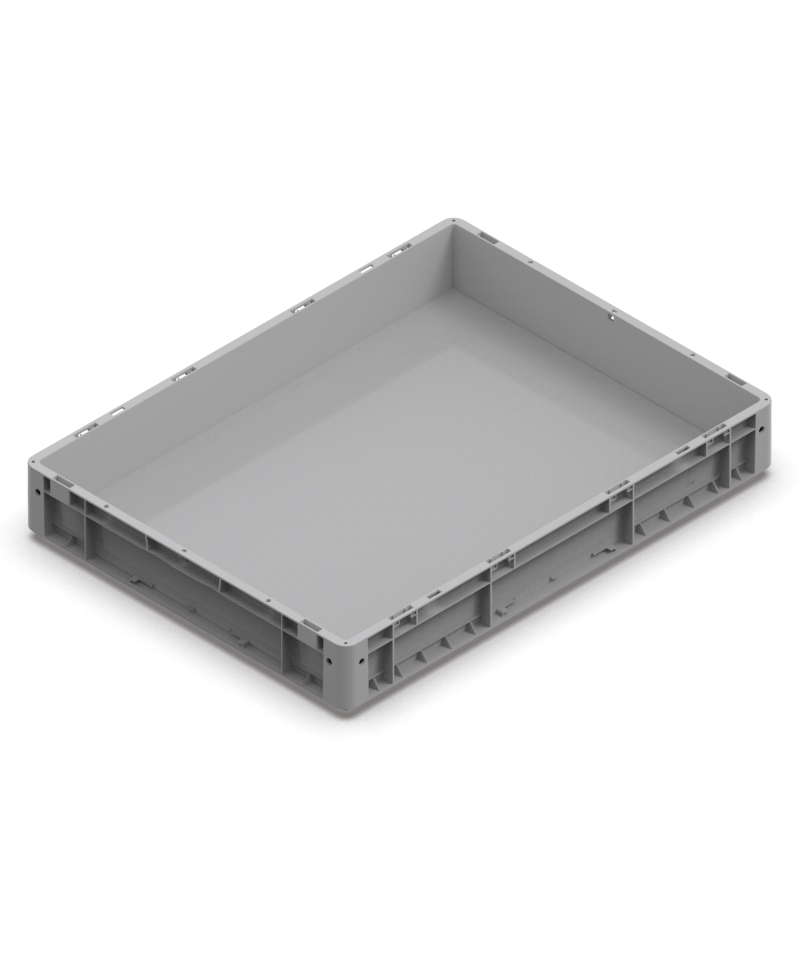 CASSETTA NEXIT 800X600X120H MM – FONDO RINFORZATO – PORTATA 80 KG – MANIGLIE APERTE – COLORE GRIGIO 01