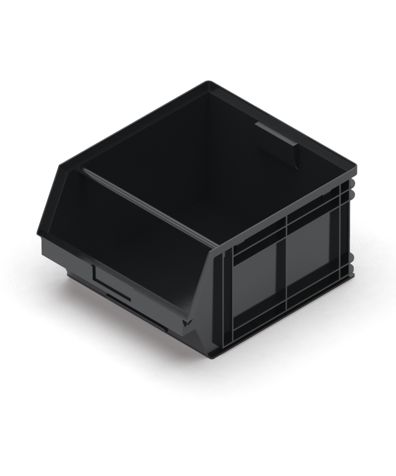CONTENITORE IN POLIPROPILENE CONDUTTIVO SERIE ZEUS MISURA 5P4 CON FONDO NERVATO A 45° E TRAVERSINO-CAPACITA Lt=63 – DIM. MM L=450 P=520 A=300 – COLORE: NEROPZ***