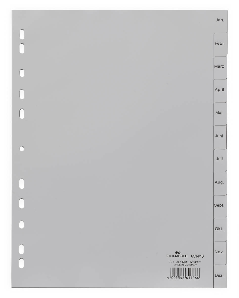 Divisorio A4 12 tasti Jan-Dec con cavalierini prestampati in PPL, grigio