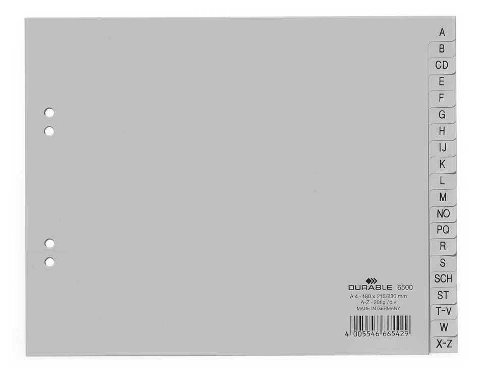 Divisorio alfabetico in polipropilene, ideale per la catalogazione dei documenti.