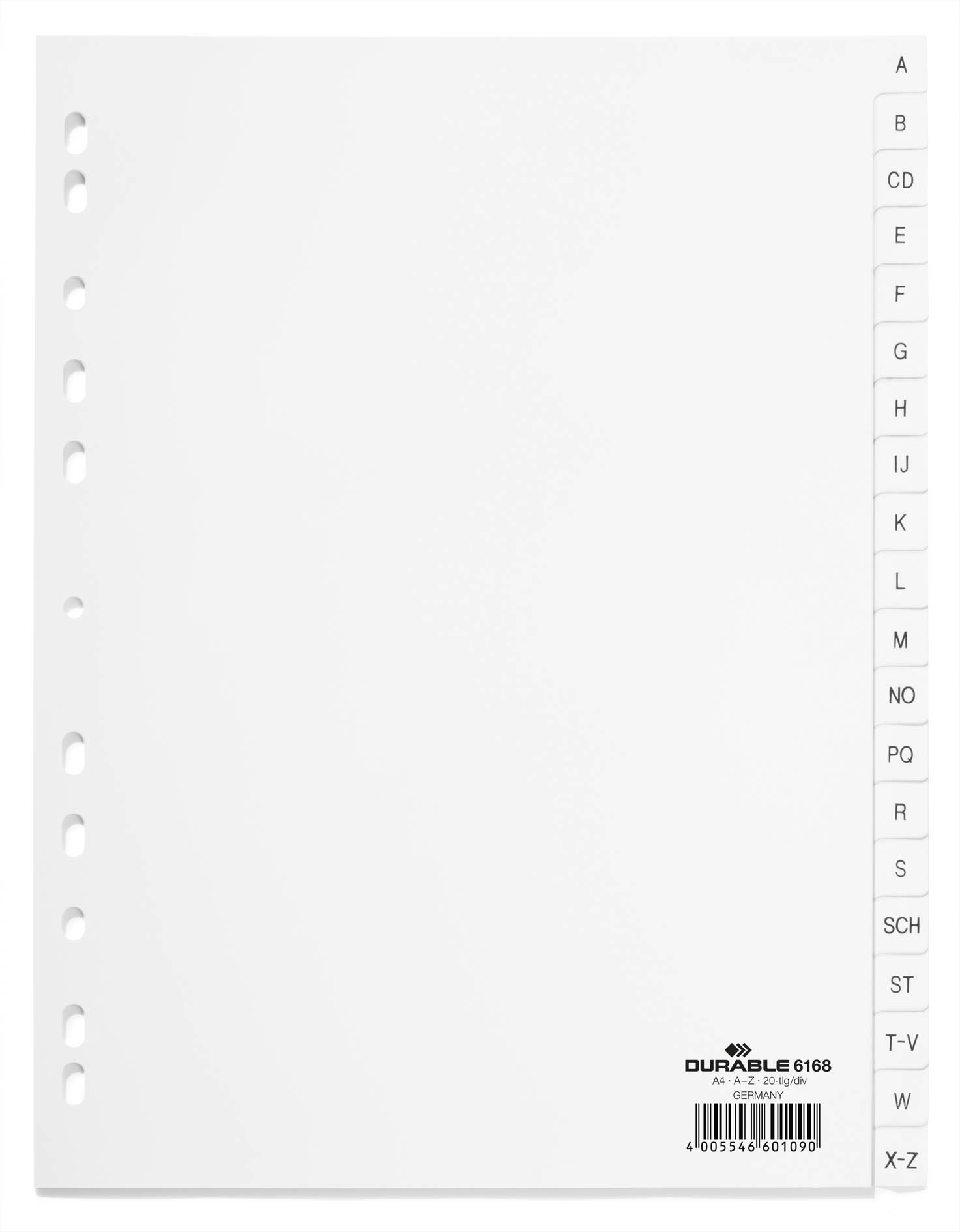 Divisorio A4 20 tasti A-Z cavalierini prestampati in PPL, bianco