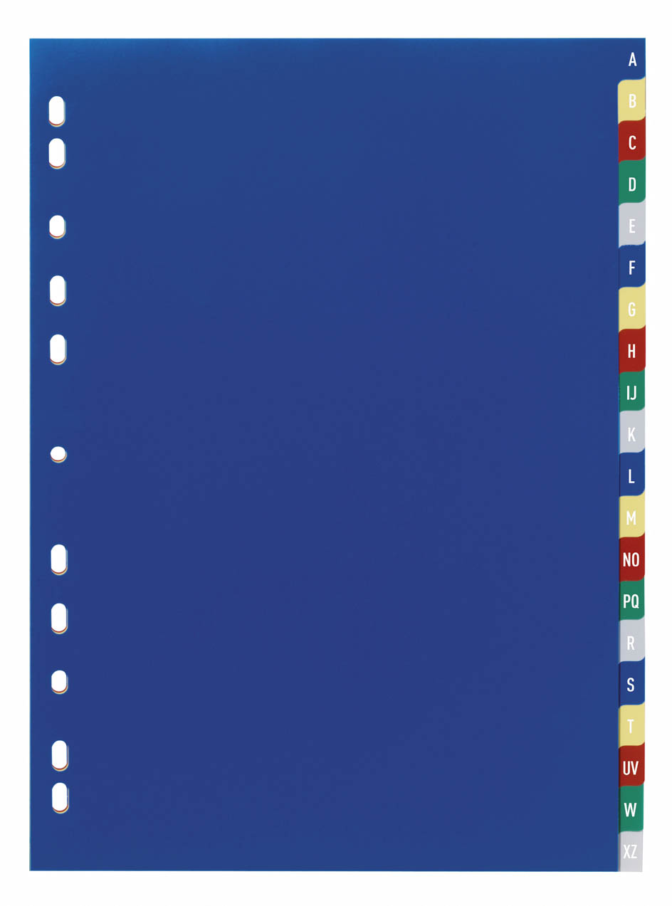 Divisorio A4 20 tasti A-Z con cavalierini colorati e prestampati con indice in PPL, multicolore