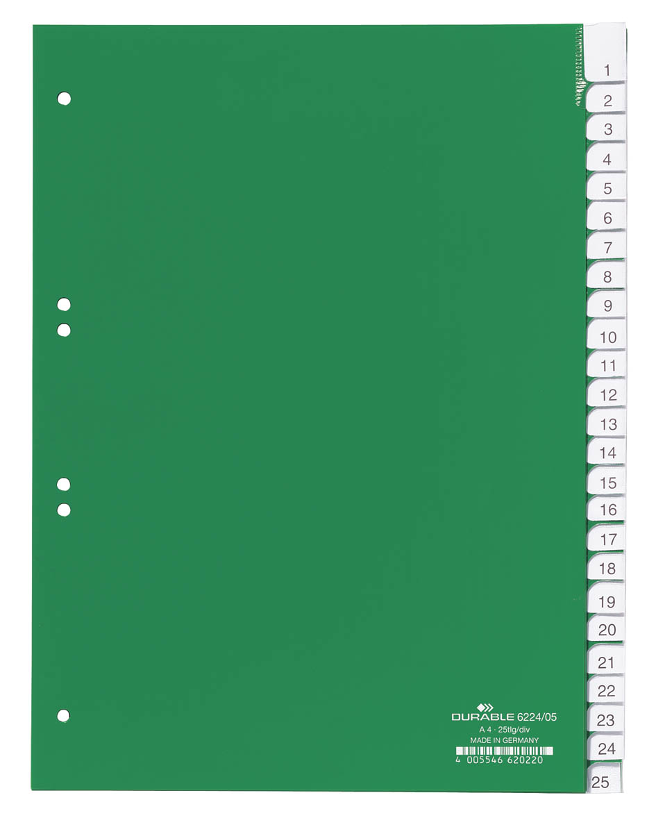 Divisorio A4 25 tasti termosaldati con indice in PPL foratura 60/80+80x80x80 mm, verde