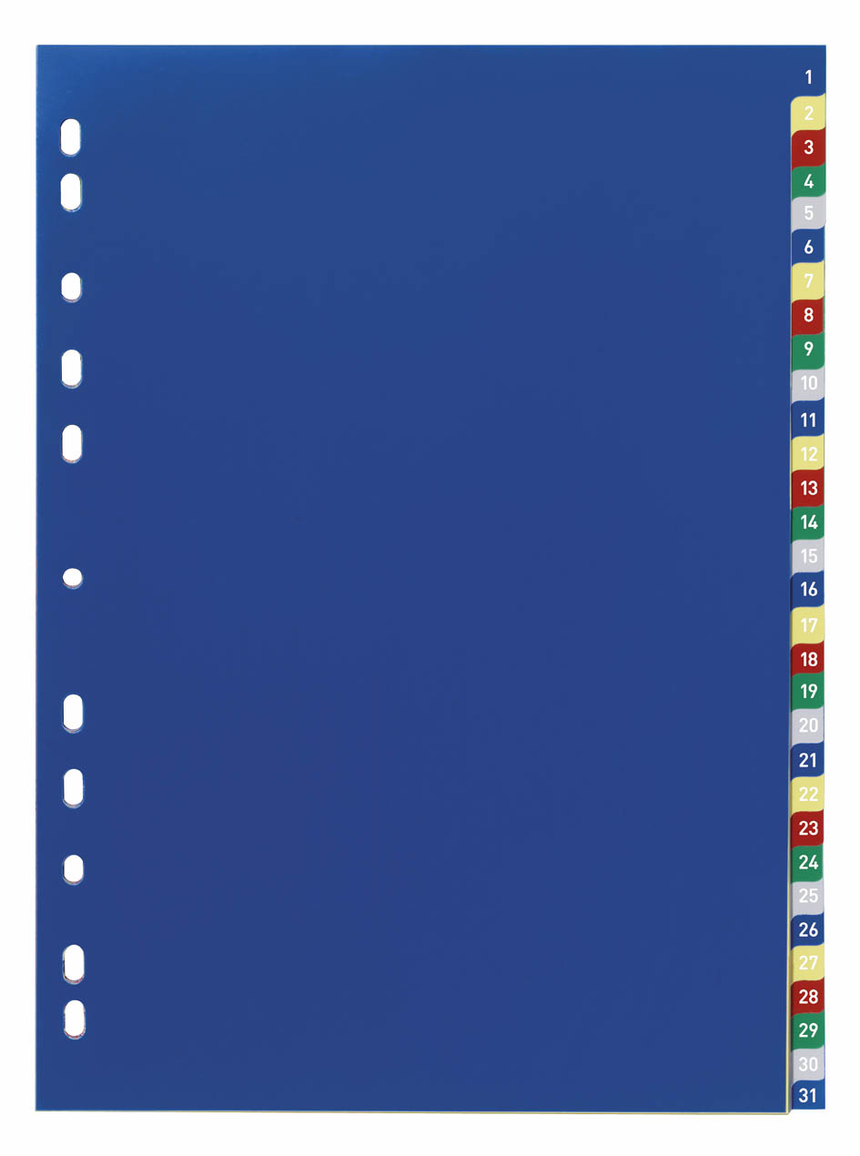 Divisorio A4 31 tasti 1-31 con cavalierini colorati e prestampati con indice in PPL, multicolore