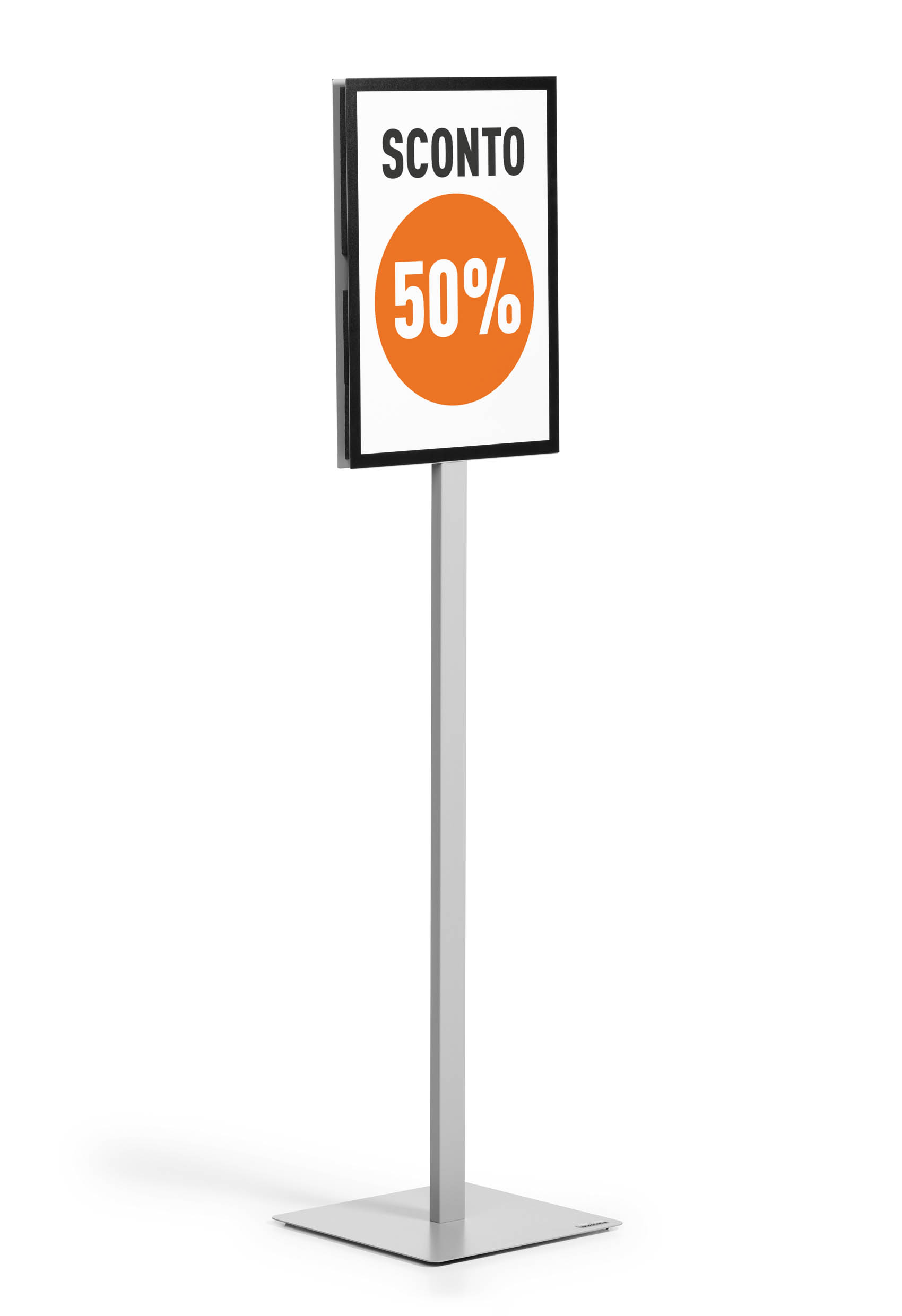 • L’espositore da pavimento INFO STAND BASIC è adatto sia alla presentazione di informazioni che come sistema di orientamento e guida grazie alla sua leggibilità su due lati