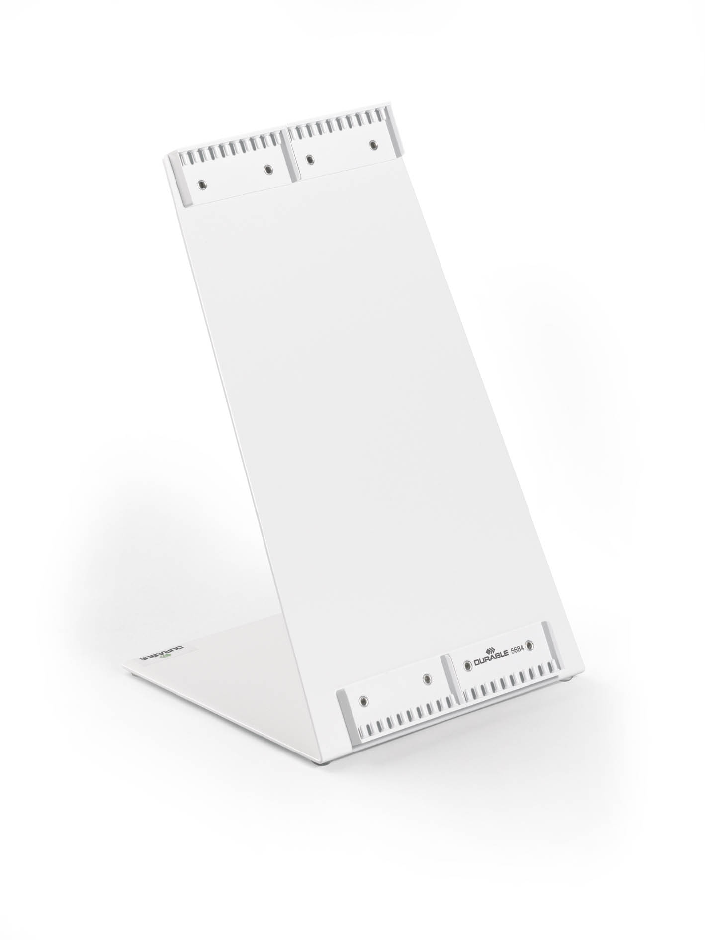 Base da tavolo formato A4 in metallo rivestito in plastica. Può essere utilizzata per creare un leggio da tavolo aggiungendo i pannelli espositivi FUNCTION (acquistabili separatamente) fino ad un massimo di 20 pannelli.Dimensioni: 190 x 165 x 295 mm (LxPxH).
