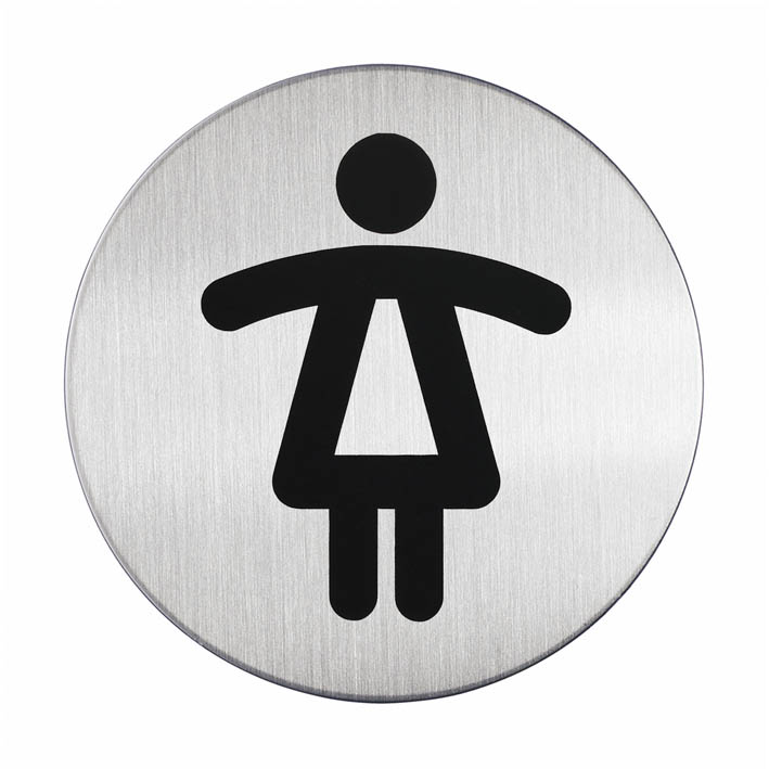 Pittogramma tondo Ø 83 mm, con simbolo ‘WC DONNE’. In acciaio inossidabile spazzolato di alta qualità. Dotati di potente adesivo sul retro che assicura un’applicazione duratura nel tempo. Serigrafie impresse a laser, resistenti e antiabrasione.I pittogrammi DURABLE possono essere interpretati al primo sguardo da chiunque, sono adatti per essere esposti in qualsiasi ambiente e sono immediatamente riconoscibili. Applicabili su qualsiasi materiale, creano una combinazione particolarmente elegante applicati a superfici vetrate.