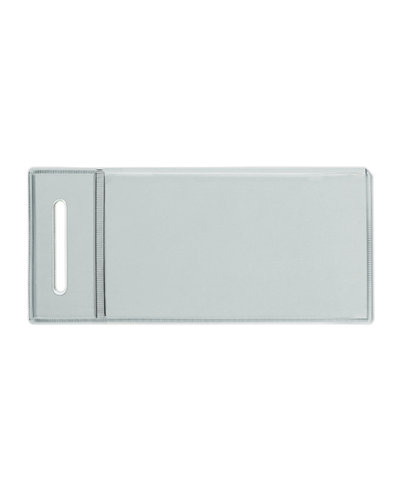 PORTA ETICHETTE IN PVC MORBIDO CON FORO – 1/3 DIN A5 – DIM. MM L=210 P=80 – COLORE: PLASTICA TRASPARENTE – CONF. 10 PZ