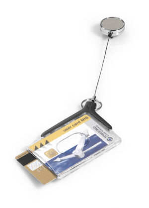 Dotato di un fermi interni per mantenere in posizione i badge inseriti e di asole che ne facilitano la rimozione. Fornito di chiocciola YO-YO cromata con filo retrattile da 80 cm, dotata sul retro di clip in metallo per l’aggancio a taschini o cinture. Robusto aggancio angolare che permette di utilizzare tessere sia formato verticale che orizzontale.