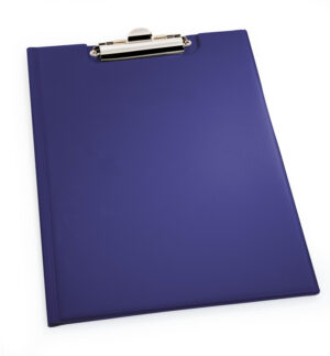 Portablocco f.to A4 con resistente molla fermafogli. Dotata di banda laterale interna portadocumenti.